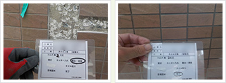 外壁タイルは、専用モルタルでコンクリート面に貼られています。そのモルタルとコンクリートとの接着が弱まり、隙間が生じた状態を『浮き』と呼びます。浮きはタイル剥落の恐れがあるため、その隙間に接着剤を充填して固定します。残念ながら、タイルの浮きは表面を見ただけでは、判別することが出来ません。